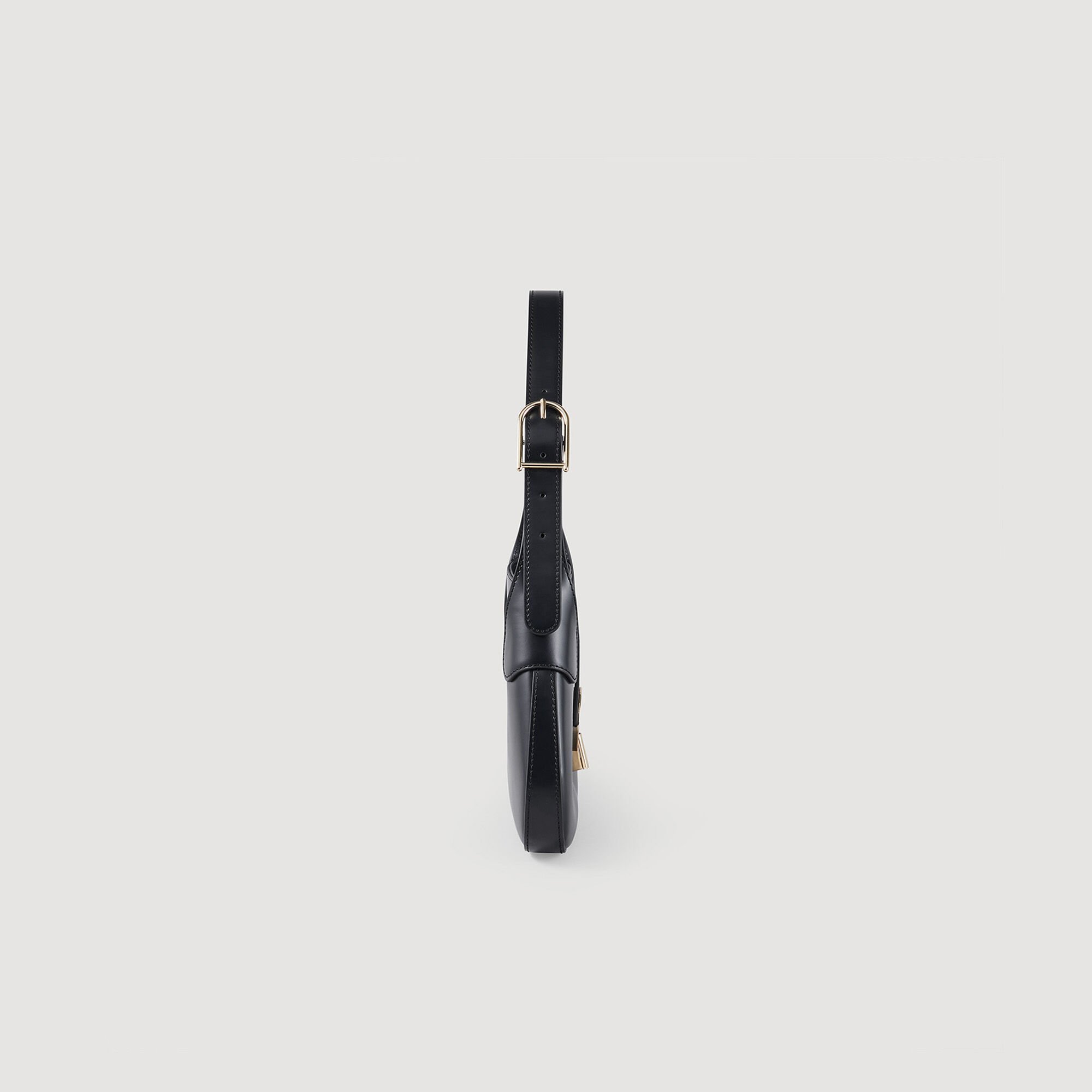Smooth leather shoulder bag with a signature clasp and a metal buckle handle.